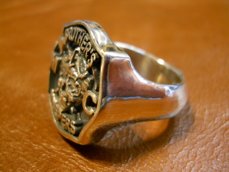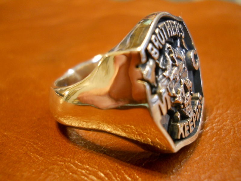 This is the Official BKMC Mens Club Ring made exclusively for the Brothers Keepers MC by Maddog Silver and only available to FULL PATCH MEMBERS. Cast from solid ,925 sterling silver in my studio in Shreveport, La, this ring is built to last! This ring is available in sizes 10-16 including half sizes. BKMC Products are made to order, so it will take about 2 weeks from the time I recieve your paid order till you recieve your ring.