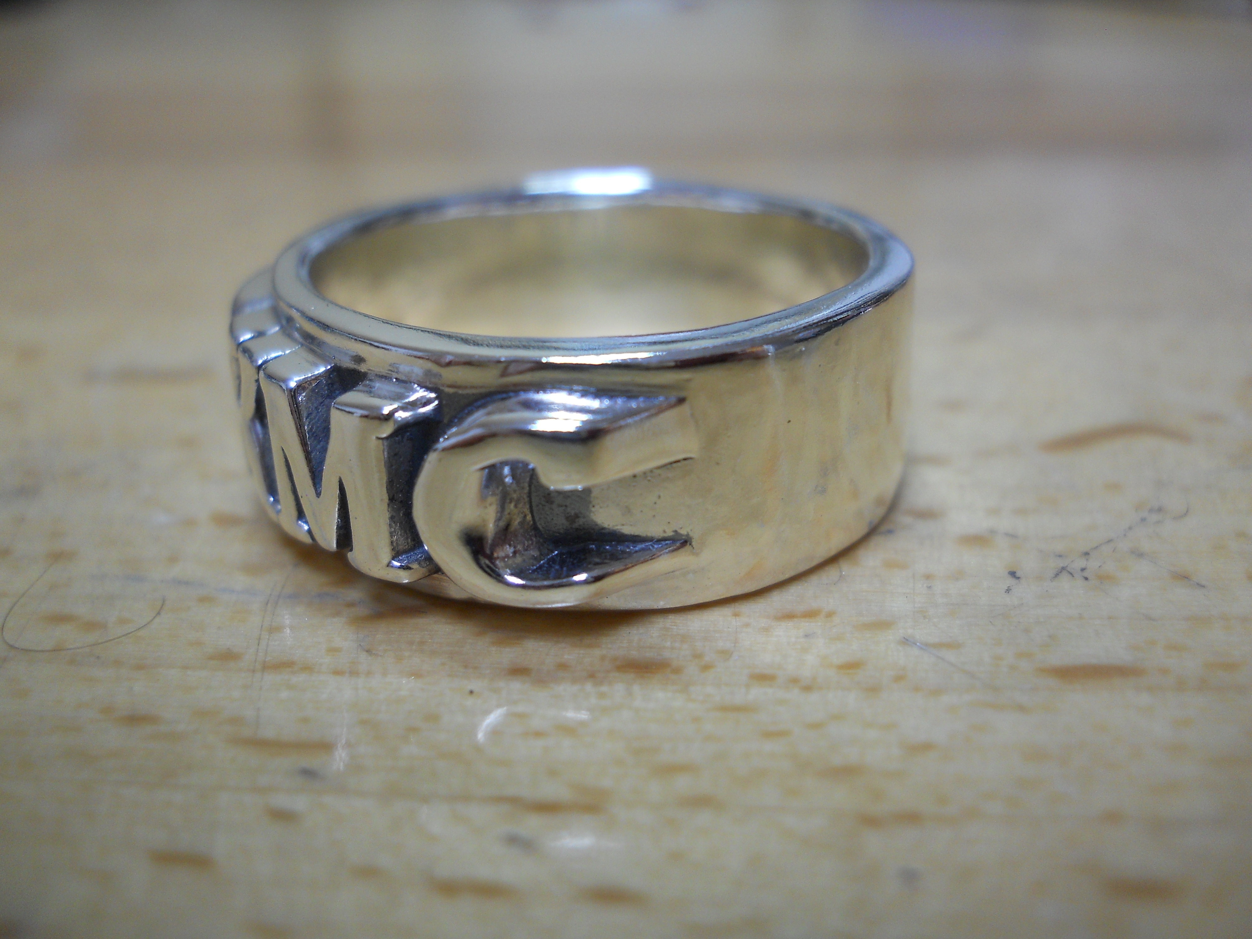 Heavy Solid Sterling Silver BKMC Men's Band weighs in at approximately 20 gms. Available in sizes 10-16 including half sizes.