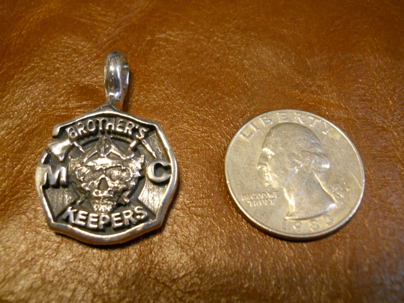 Large Brothers Keepers Pendant, made exclusively for FULL PATCH MEMBERS of the Brothers Keepers MC. This impressive pendant is cast in solid .925 sterling silver, made in my studio in Shreveport, La.