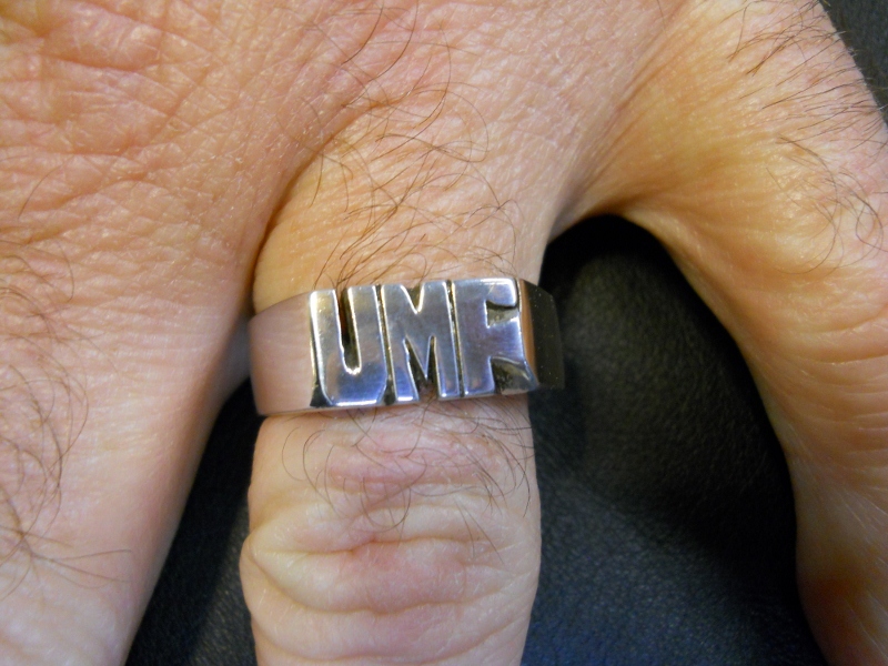 Here is the UMF Band Ring. Made exclusively for the UMF in my studio in Shreveport, La. Cast in solid .925 Sterling Silver. Available in size 9 - 15 including half sizes.